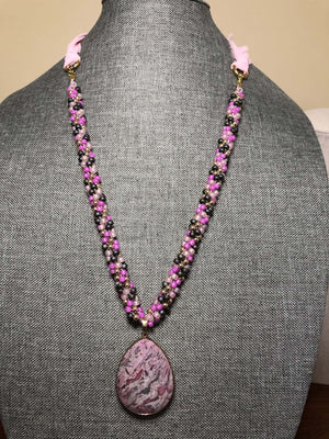 Our Pink and gray ribbon closure necklace is a great symbol of breast cancer awareness. Its pink and gray beads are strung in a beautiful pink ribbon closure, and is made of 14k-gold-plated metal. It makes a unique accessory that you wear to a dinner party or a fun girls' night out, or it goes perfectly well with jeans and shirt for a casual afternoon.