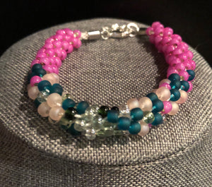 Pink & Green Kumihimo bracelet 6.5 inches with 1.25 extender